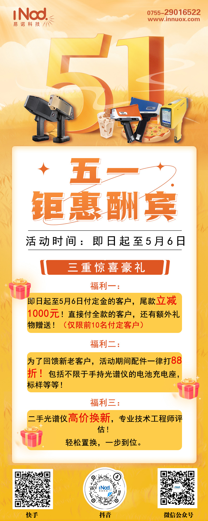 五一驚喜不斷,易諾科技光譜鉅惠來襲,二手光譜儀高價換新,工程師評估!一步到位
