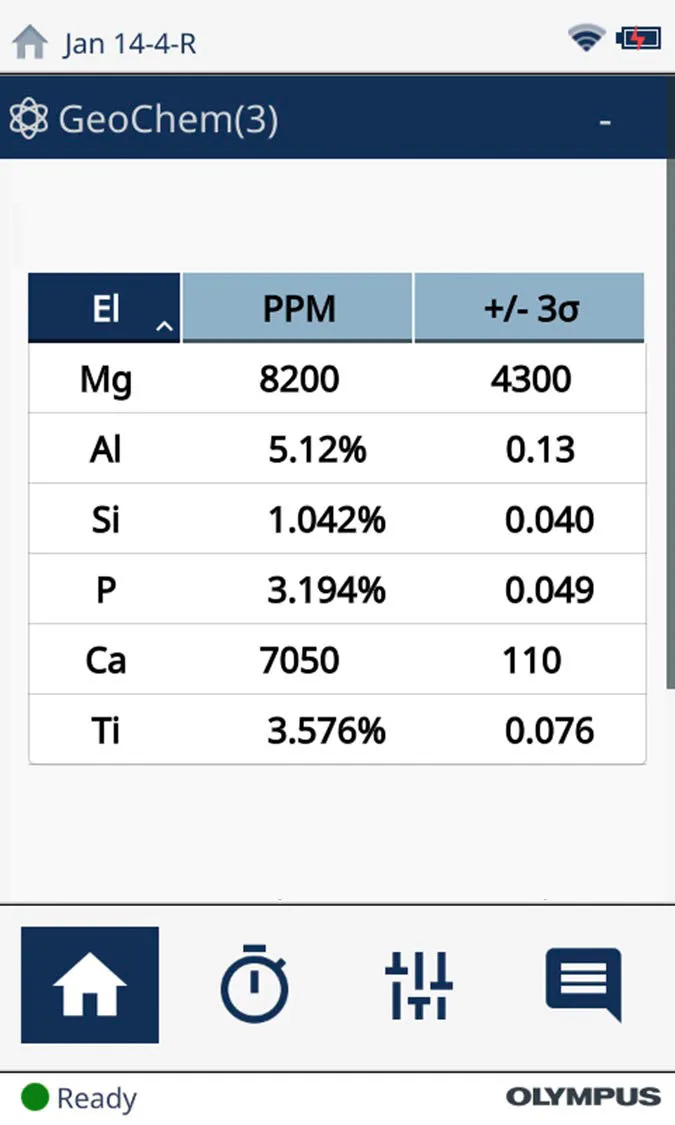 在計算元素含量的同時,奧林巴斯Vanta手持式XRF光譜儀還可以實時計算這些礦物質(zhì)和化合物的含量。通過便攜式光譜分析儀易于使用的用戶界面,用戶可以將光譜儀設(shè)置為將計算出的含量報告為化合物,如圖2所示。Vanta便攜式光譜分析儀的軟件可以進行這種計算,而且只需幾秒鐘就可以完成在元素報告和化合物報告之間的切換。