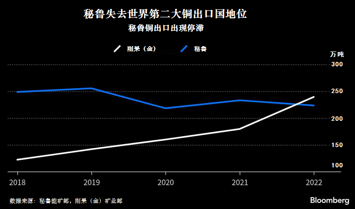 最近的一份報告認為,未來幾年,由于秘魯產(chǎn)量停滯,剛果(金)將占據(jù)全球第二大產(chǎn)銅國的位置。鄰國智利仍然是世界最大銅生產(chǎn)國和供應國。彭博通訊社報道,2022年剛果(金)銅出口量為240萬噸,而秘魯銅出口量為220萬噸。