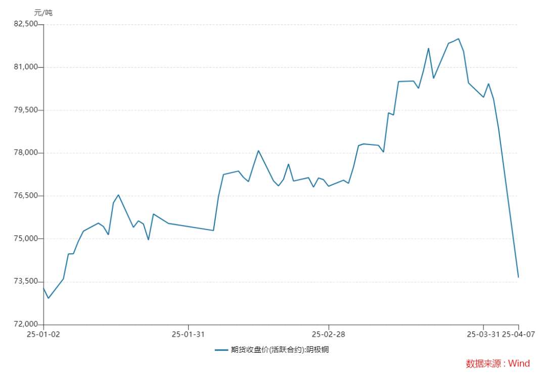 而在兩周前,美銅價格還曾強(qiáng)勢刷新歷史高位,美國當(dāng)?shù)貢r間3月25日,COMEX銅價一度上漲至每磅5.374美元,刷新了2024年5月時創(chuàng)下的每磅5.199美元的歷史最高紀(jì)錄。滬銅也不遑多讓,Wind數(shù)據(jù)顯示,3月26日,滬銅主力收于8.2萬元/噸,創(chuàng)下年內(nèi)新高。