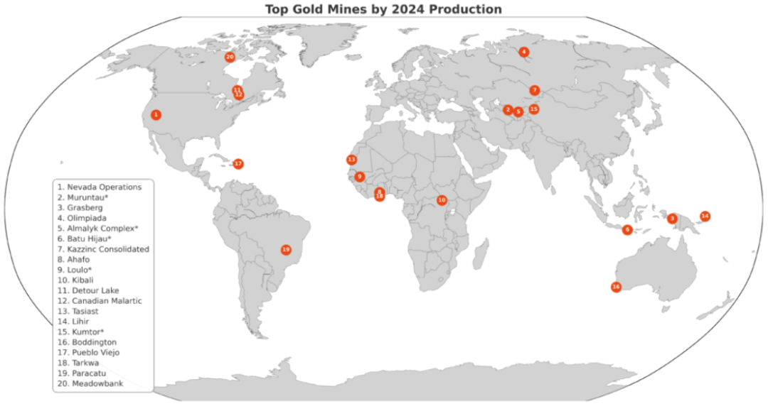 全球前二十大金礦主要分布在中亞,東南亞和非洲等地區(qū),中國無上榜金礦。